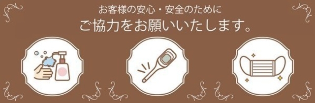 お客様に安心してご来店いただけるよう日頃より店内の衛生管理、スタッフのマスク着用・手洗・消毒など対策を徹底しております。 しかし、この度の感染者数拡大に伴い、当店ではさらに衛生管理を徹底すると同時に、お客様の健康と安全確保を最優先するため、ご来店いただくお客様にも予防対策にご協力いただいております。 ご予約時には一度下記をご確認いただきますようよろしくお願いいたします。 お客様には、3つの事にご協力いただいております。 1、ご来店時のマスク着用 2、入店時の検温 3、入店時の手指の消毒 詳しくはこちらをご覧下さい https://zebre-men-tsukuba.com/?p=3173
