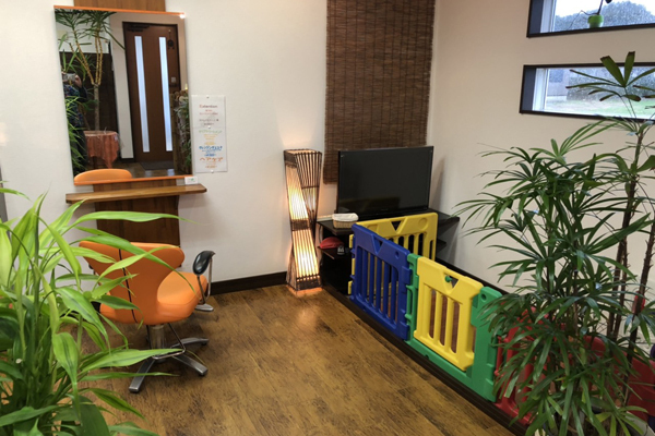 オレンジを基調とした店内には、観葉植物や手作りの家具♪アットホームな癒し空間