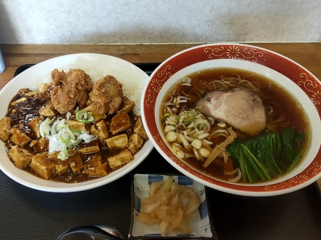 ●とりから麻婆丼セット 麻婆豆腐がイチオシらしく、 ピリ辛で食感の良い豆腐がたくさん。 これに唐揚げが2つのって、ボリュームあり。 ラーメンは昔ながらの 普通のラーメンでした。