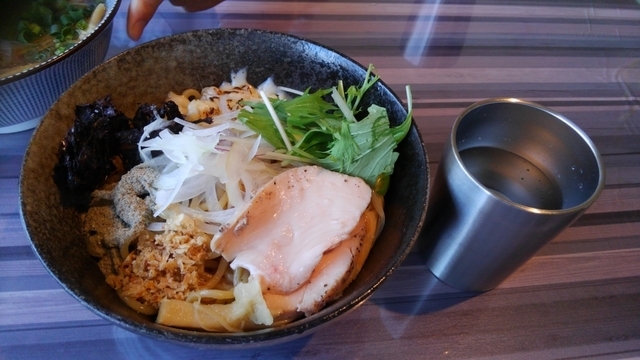 平日の昼に来店しました。 少し出遅れたので店内はすでにいっぱいでしたが、回転が良く5分程度で座れました。 食券制で普通盛りも大盛りも同じプライスなのが好感触です。店員さんもとても感じが良く、気持ちの良いお昼になりました。 手書きで、各メニューの出汁が書いてあり、日によって出汁が変わるそうです。 注文は油そば大盛り(800円)を注文しました。 太麺に鶏チャーシュー、メンマ、板ではない海苔など色々トッピングされ、珍しいところで「とろけるチーズ」も載っていました。 普通に想像する油そばより、サッパリとした味わいなので、量もありガッツリですが、重すぎず美味しかったです。 次回は、鶏そばをいってみたいと思います。