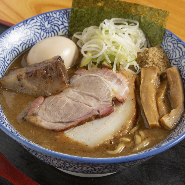 前身の常勝軒総本店で提供していた味よりも更に濃厚さを極めたスープに、自社工場で作る特製麺を浸して一心不乱にすする……。デフォルトの豚バラに加え、店内で仕込む豚肩ロースつるし焼き&豚トロチャーシューが加わる「特製」がオススメです。
