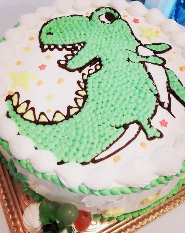 今日は緑色や恐竜が大好きなお孫さまのためのオーダーメイドケーキのご紹介♪