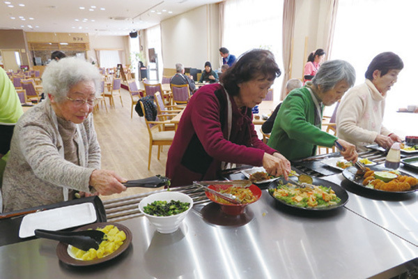 バイキング形式のランチ!取れない方はスタッフと一緒に♪