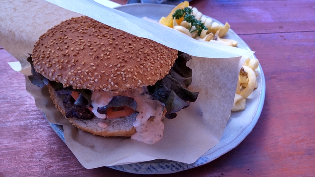 平日の昼に伺いました。 BLTと迷いましたが、サービスでゆで卵をつけてくれるので、1日に卵2個は自重してハンバーガーにしました。 具の肉、トマトなどはソースともしっかり合っていて美味しくボリュームがあり、バンズも具に負けないしっかりとしたバンズです。 このハンバーガーにスパイラルポテトとスープが付くので、40代半ばには満足のボリュームです。 また、食べに伺いたいと思います。