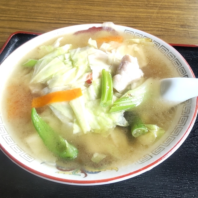 ●野菜五目そば サイズは普通でした。 塩ベースで野菜の旨味がでたスープ。 もちもちの太ちぢれ麺。 キャベツ中心にシャキシャキ野菜。 どれも美味しく十分な一品。 次は人気メニューがいろいろあるので チャレンジしてみます。