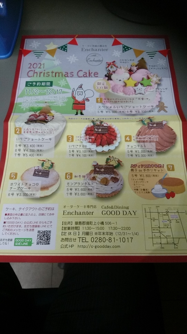 ランチにお伺いしたお店の中にケーキ店が入っていました。 クリスマスケーキをどうするか悩んでいたので、チラシをいただいてきました。 モンブランタルト、美味しそうなので今年のクリスマスはこれにしようと思います。