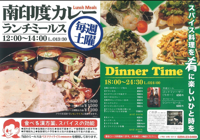 ・カレー4種類&7品/1.800円