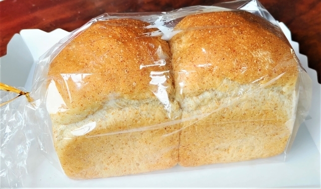 《全粒粉食パン》370円 やや小ぶりの山型食パン。 トーストすると香ばしく、そのままでもおいしくいただけます。 その日に焼き上げる食パンの種類が分からないので、事前に販売する食パンの種類と時間を確認してから訪問しましょう。