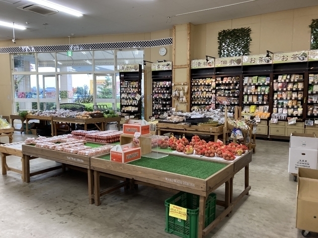 LALAガーデンにあるわくわく広場の支店ですが、こちらで知って初めて昼に訪れました。Q't店と同様ですが、こちらの方が広いせいか、陳列具合はゆったりで品揃えも多いように見えます。やはり近郊で収穫された果物や野菜等の農産物ばかりでなく、地元食品企業や他県産のちょっと珍しい加工品、特に惣菜やパン、弁当等がいろいろ陳列されています。野菜、生うどん、パンに昼食用の幕の内弁当を購入しました。店直近の駐車場も意外に空いているので、アプローチしやすい点はQ't店より良いところかな。