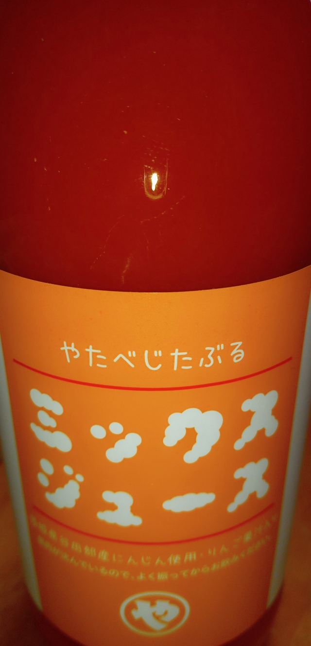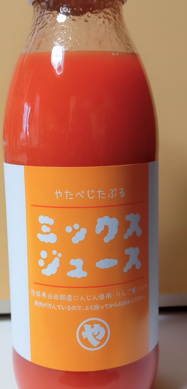 家族が「ミックスジュース」を買ってきてくれました。にんじんがつくば市産で、りんご・レモンが国産です。とても濃厚で美味しいジュースでした。