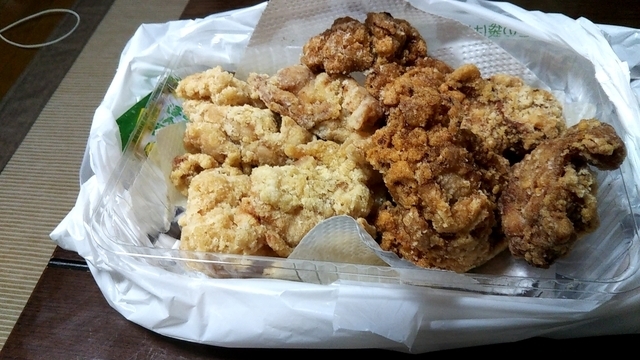 土曜夕に再訪すると、前客5~6人待ちの相変わらずの盛況です。「塩醤油あい盛りパック」と「あまだれ手羽先」を注文・テイクアウトしました。やはり揚げ立てなので熱々です。あい盛りはニンニク不使用の旨出汁塩ダレを使った塩からあげと、ニンニク使用の二段仕込み醤油を使った醤油からあげのパックで、両方の味付けが愉しめます。また、あまだれ手羽先は甘塩っぱい醤油ベースのタレで味付けしていて、これも美味しい。今回も自宅での酒肴として愉しみました。