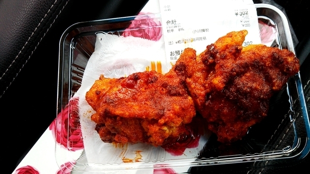 また日曜午後に再訪すると、前客2組待ち。今回は「ヤムニョムチキン(250g,4個)」と「スパイシー手羽先(4本パック)」をテイクアウトしました。いずれも揚げ立て熱々、ヤムニョム・・は甘辛い赤っぽいタレを付けた唐揚げで美味しい。手羽先は塩胡椒主体のスパイスがやや利きすぎなのかちょっと塩辛い。今回も酒肴として愉しみました。