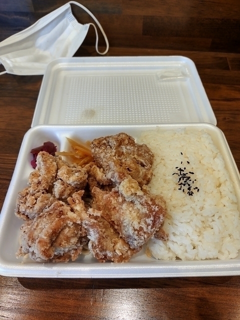 からあげ単品頼んだらプラの器に乗せ袋に入れて『ふたが無いので気をつけてお持ちください』と言われてモノを渡された。プラごみや経費の削減は理解するが、せめてキッチンペーパーなどで上を覆うくらいはしてほしかった。味は良いだけに店と店員の対応は残念。