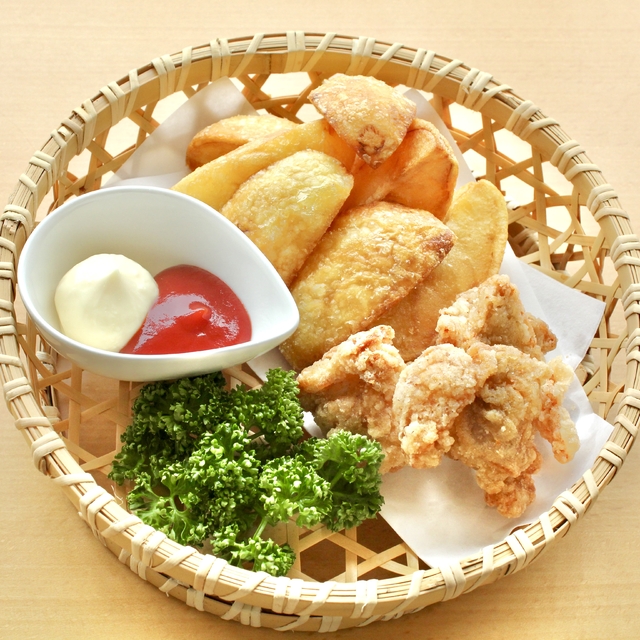 大きなポテトフライ&からあげ