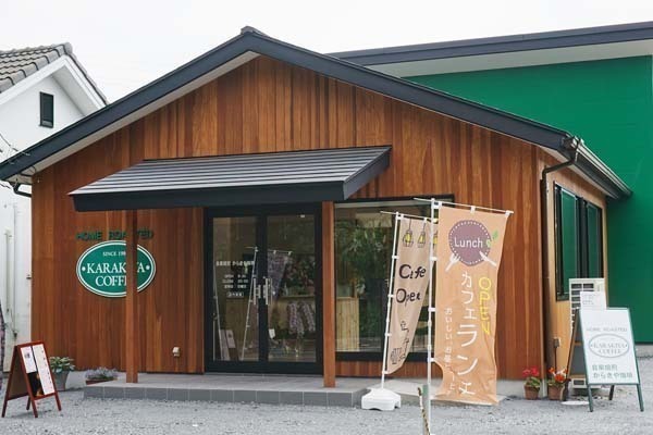 「からきや珈琲」の隣にカフェが新規オープン♪ランチは月曜から土曜まで毎日実施!木のぬくもり溢れる店内でゆったりした時間をお過ごしください。吹き抜けの解放感と陶器の器で落ち着いた雰囲気で食事を楽しめます。