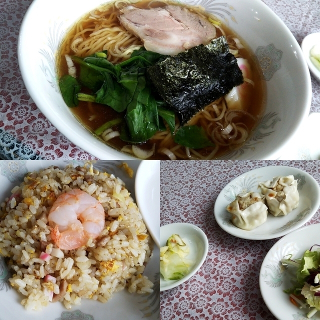 半チャーハンラーメンランチ (500円税別)を頂きました♪ 先輩の営業する此方のお店へ向かい以前から話を聞いていた500円ランチを選択## 最初にサラダとお新香、焼売が登場。 焼売 がデカイし旨いんです♪ チャーハンもパラっとしていて中々の出来ばえです## 上にのった海老もプリっプリでGood! らーめんは昔ながらのスープ&チャーシューとしっかりとコシのあるちぢれ細麺が良いです♪ アイスコーヒーまで付いて500円はかなりお得だと思います## また、訪問します(^-^)