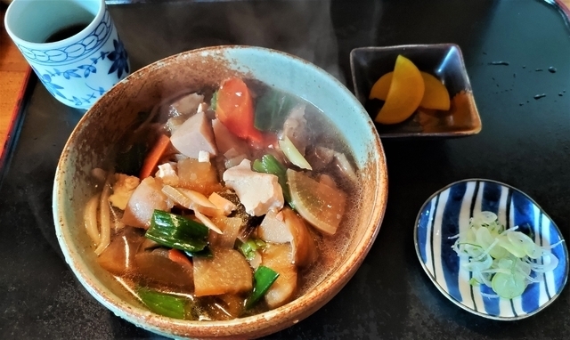 《かけけんちんそば》 1000円 そばは、やや太めで、歯ごたえがあります。 けんちんの具はよく煮込まれていて、大根や里芋はとても柔らかいです。 そば湯も提供され、最後にけんちん汁に入れて、汁を全部飲み干して完食しました。 個人的に好みのそばで、おいしくいただきました。