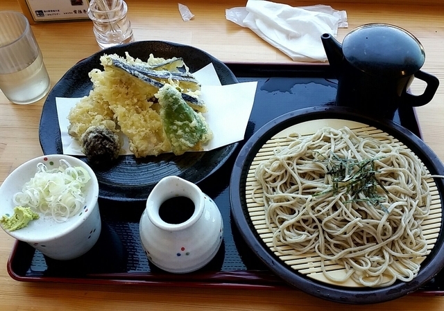 ◆鮎天ざるそば1,250円 そばは、常陸秋そば。 細麺で美味しいそば。 つけ汁は濃いめの味付けで、 秘伝のダシ使用。 鮎天は、揚げたてで、 プリプリでさすが 地元一押しの品。