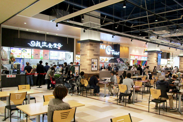 店舗だけでなくテナントゾーン施設も設備が充実。フードコートエリアを拡張し、ソファー席や手洗い温水マシン、電源コンセントなどを設置。子ども用トイレの新設や女性用トイレのパウダーコーナー設置も行いました。