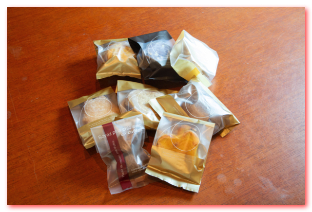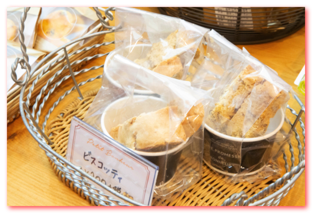 ・かぼちゃクッキー ・クロワッサンクッキー ・くるみクッキー ・チョコくるみクッキー ・バニラクッキー ・ココナツクッキー ・紅茶クッキー