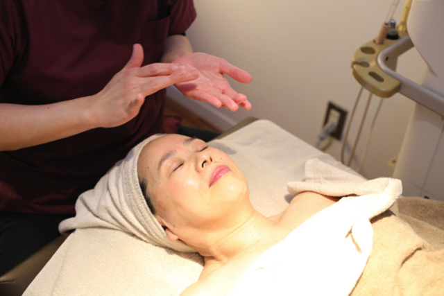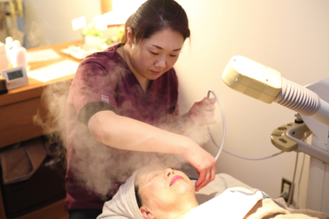 スチームを当てながらしっかりとお顔から肩までマッサージしていきます。