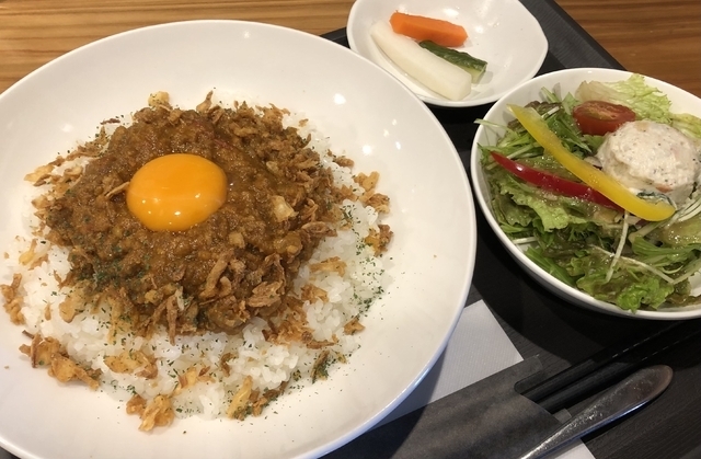 ありそうで無かったキーマカレーの専門店。 キーマカレー大好な者としては嬉しいコンセプト! チーズが全面に乗った物がメッチャ気になったけど、 初来店なのでまずはスタンダードなタイプをサラダ付きでオーダー。 サラダも瑞々しくて、シャキシャキとした食感♪ メインのカレーは、茨城のブランド豚肉たっぷりで、 フライドオニオンのパリパリした歯応えと相性バツグン。 食べ終わって個人的にはもう少し辛い方が良かったな と思っていたら、カウンターに辛さ調整用のスパイスが…。 次はスパイス使って、気になるチーズ乗せをいただきたいと思います。