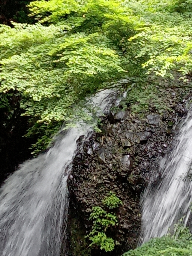 毎年隣のお蕎麦屋さんで流しそ〜めんを食べてます。 上のリンゴ園の駐車場は利用できなくなってましたので、第一駐車場がいっぱいだと下側の第三駐車場の利用になりますね。 水量は少なかったですね、今回は混雑してたので滝の裏見はせずに帰りました。 紅葉の時期もいいですが冬の凍結してるのが一番好きかな。
