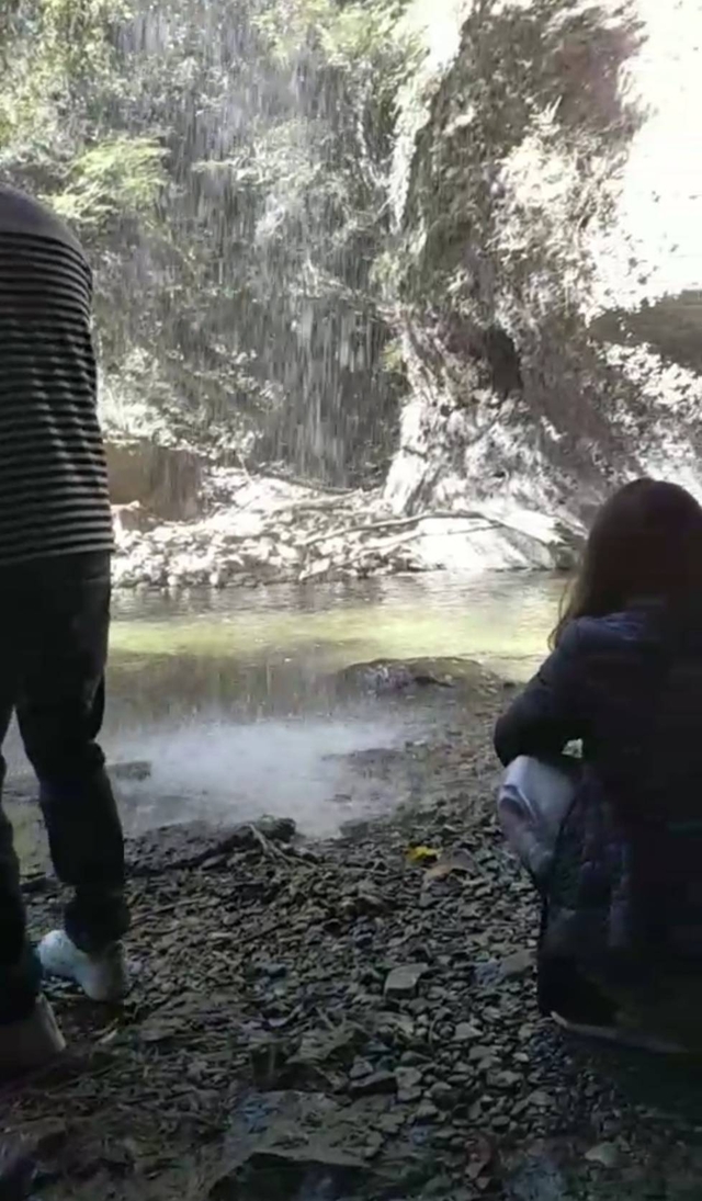 お蕎麦屋のとなりにある滝。裏に入れる所が珍しくて大人でも楽しいです。下に降りてもいいし、降りなくてもお蕎麦屋の位置からでも楽しめます。
