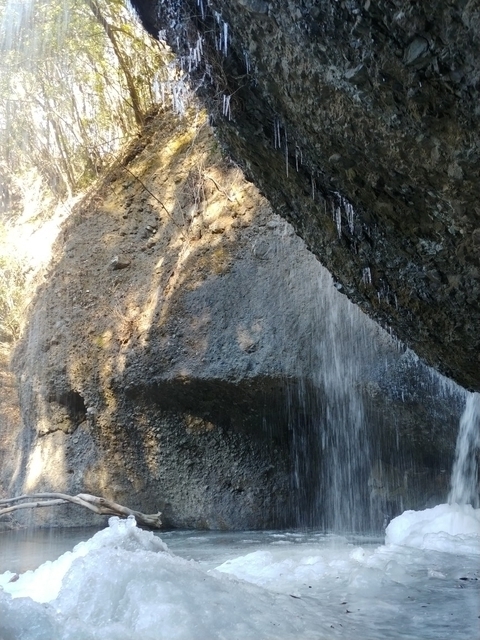 珍しい裏見の滝です。 正面からだけでなく滝の背面がえぐれていて裏からも滝を見ることができます。 水量もそんなに多くないし、駐車場もあるので気楽に見に来れます。 隣のお蕎麦屋さんの敷地なので飲食物の持ち込みはできません。 が、お蕎麦屋さん利用しなくても滝だけの観光も可能です。 天然氷を使用したかき氷や水にこだわったコーヒーなんかもありますので是非利用してみてくださいね、もちろんお蕎麦も美味しいです、夏季は食べ放題の流しそうめんもやってます。 冬季はすごく滑るので注意しましょう、本当に滑ります。