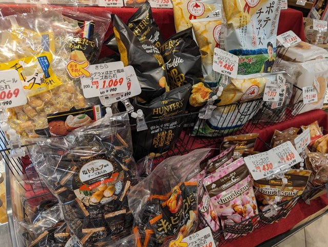 お酒のおつまみお菓子が見たことがなく、おいしそうな品が多くてついついお酒とともに買ってしまいます。 おつまみ目当ての方も多そうです。