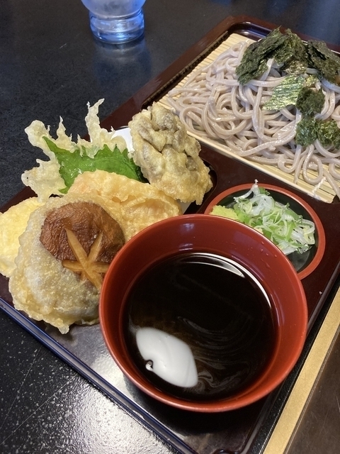 手打ちでこしがあって食べ応え抜群!野菜天もサクサクでさっぱりとしたざるそばとよく合います♪つけ汁も甘すぎなくて好み!
