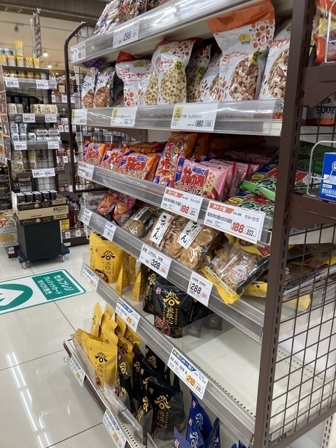 お菓子コーナーも肉も魚も、どこも充実していてなんでも揃います。駐車場も店内も広いので密もにならずあんしんです。