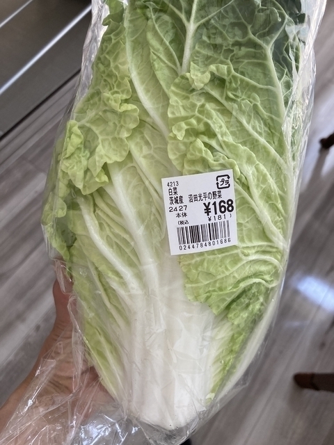 地元産の白菜が安い!丸ごと一玉で168円!最近野菜が高いのでとても助かります!生産者のお名前が書かれていて安全安心!