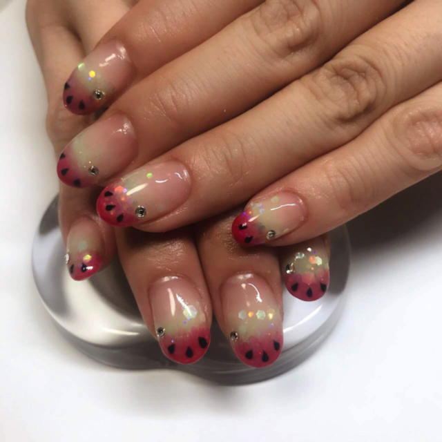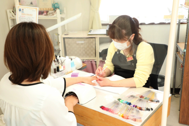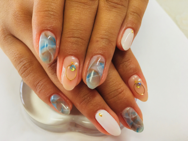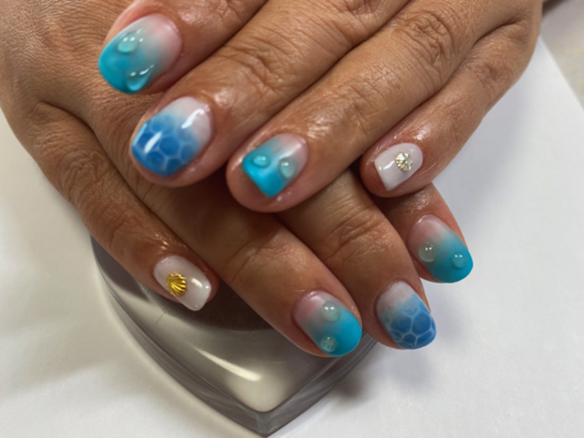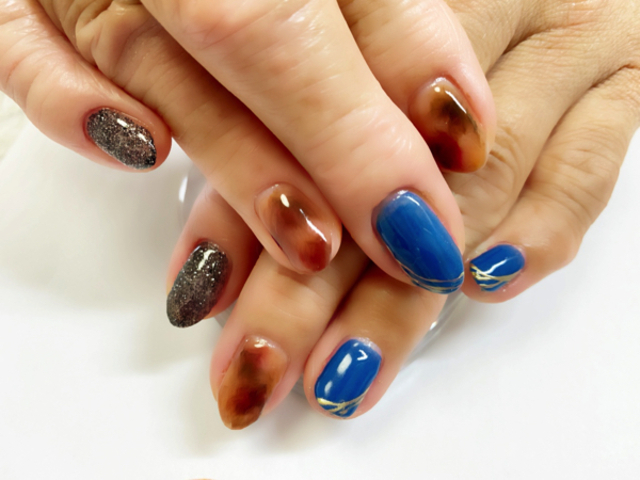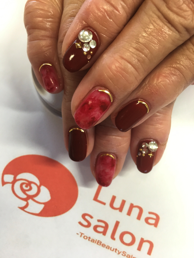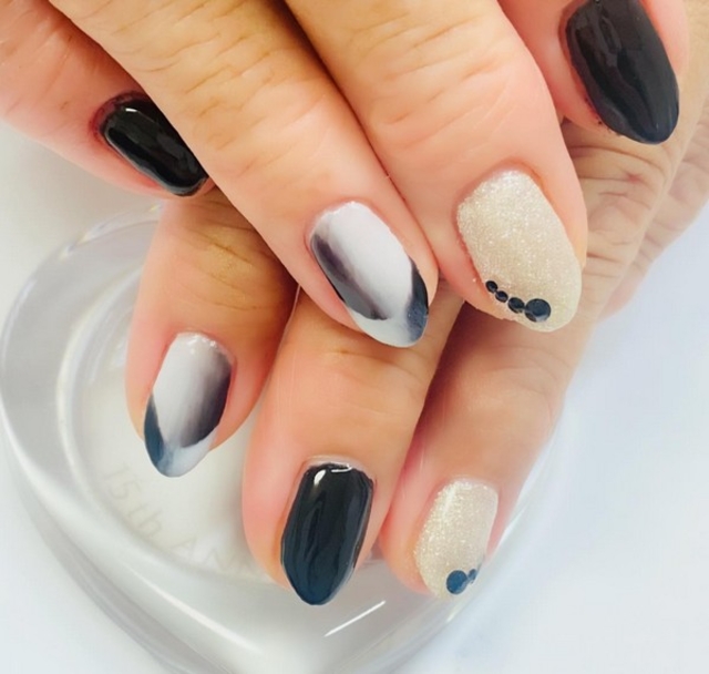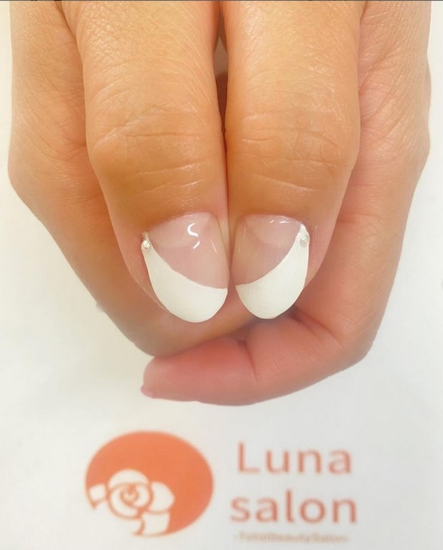 斜めフレンチネイル 色替え5カラー カラー(フレンチ)部分にはマットコート(艶消し) クリア→艶有りトップコート トップコートも2種使用 料金 7800円