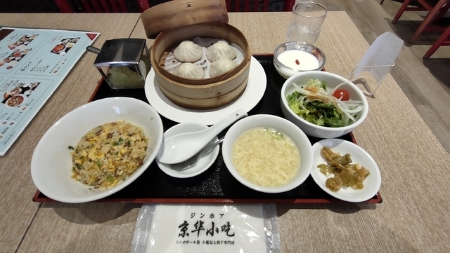 平日13時頃に入店、小籠包ランチ 1100円をいただきました。 小籠包4個、ミニチャーハン、スープ、サラダ、ザーサイ、杏仁豆腐のラインナップ。 バランスも良くいただきました。