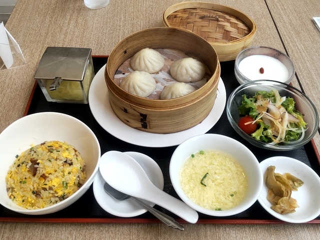 ●小籠包ランチ 小籠包が4個、チャーハン、スープ サラダ、ザーサイ、杏仁豆腐のセット。 人気の小籠包は、やわらかい皮に包まれた 肉や汁が美味しく、何個でもいけそう。 チャーハンは品の良い味付けで 美味しく特に量がちょうど良い。
