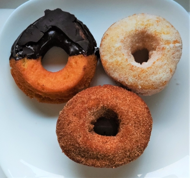 入店すると十数種類のドーナツがシューケースの中に並んでいました。 その中から、チョコ(170円)、シナモン(170円)、シュガー(160円)の3種類を購入しました。 チョコは、他のドーナツに比べ厚みがなかっので、ザクザクといった食感。 シナモン、シュガーは厚みがあったので、サク・モッチといった食感でした。