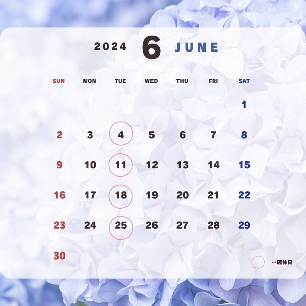 6月は毎週火曜日がお休みです