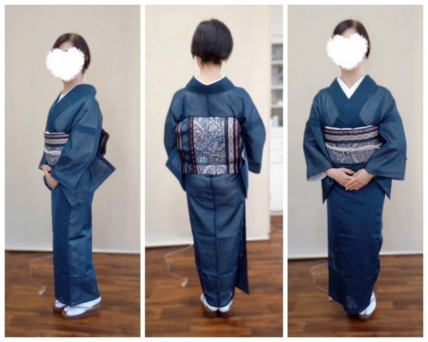今の時期にぴったりの単の紬なので、軽く身体に馴染みやすいお着物でした。