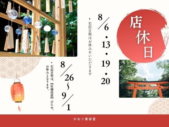 8月店休日のお知らせ