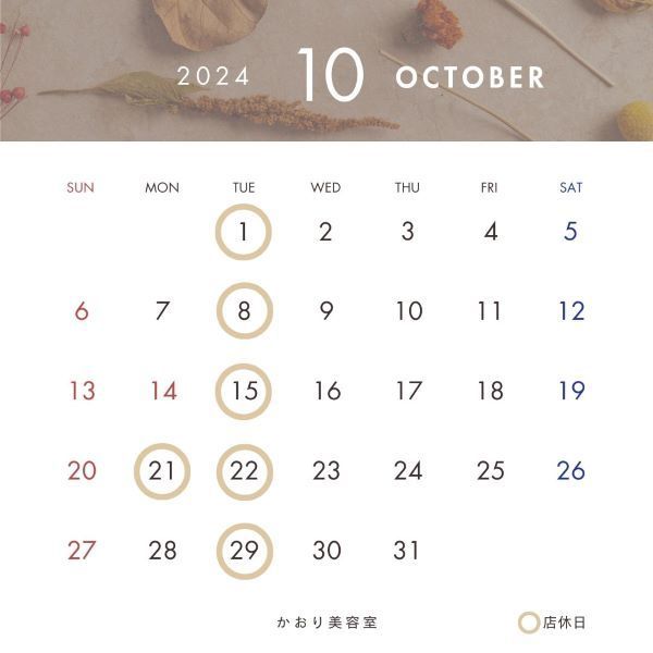 10月のお休みです