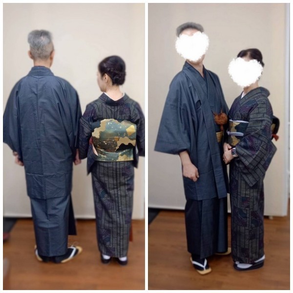 二人揃って紬のお着物,お母様から譲り受けた大切なお着物でしたのでとても着せやすかったです。
