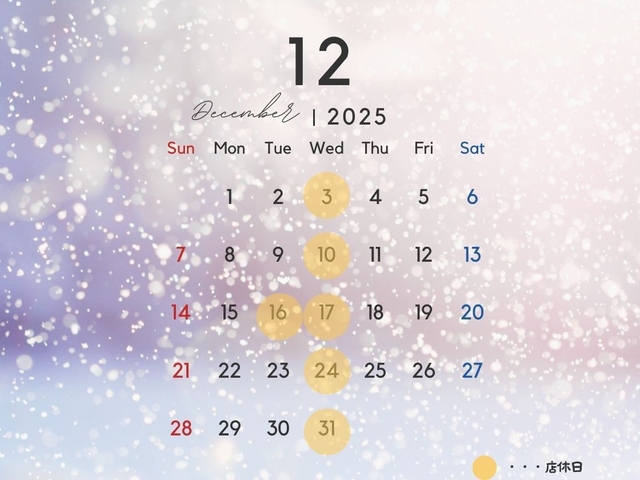 12月のお休みと、年末年始のお休みです。