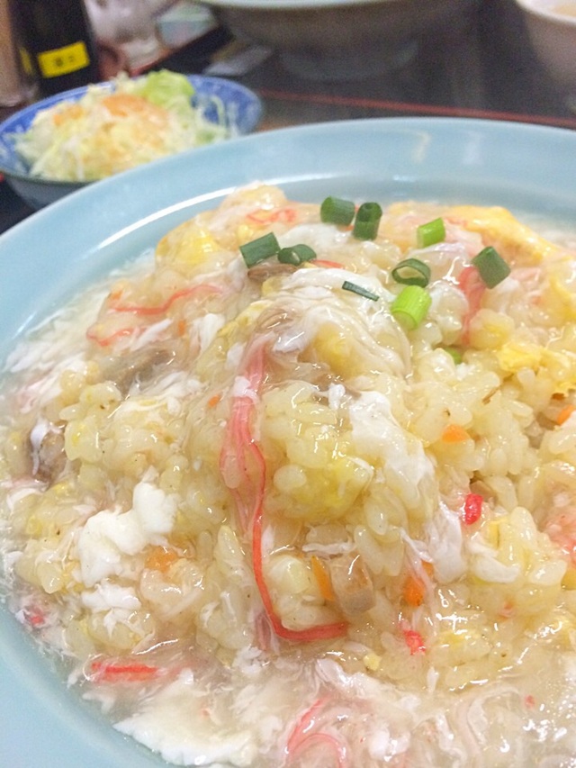 ●チャーハン定食880円3.2 五目チャーハンでお願いしました。 スープ、サラダがつく。 チャーハンは、やわらかめで、 しっとり系で、ボリューム満点。 餃子は、ジューシーだが、 味は、全体薄め。