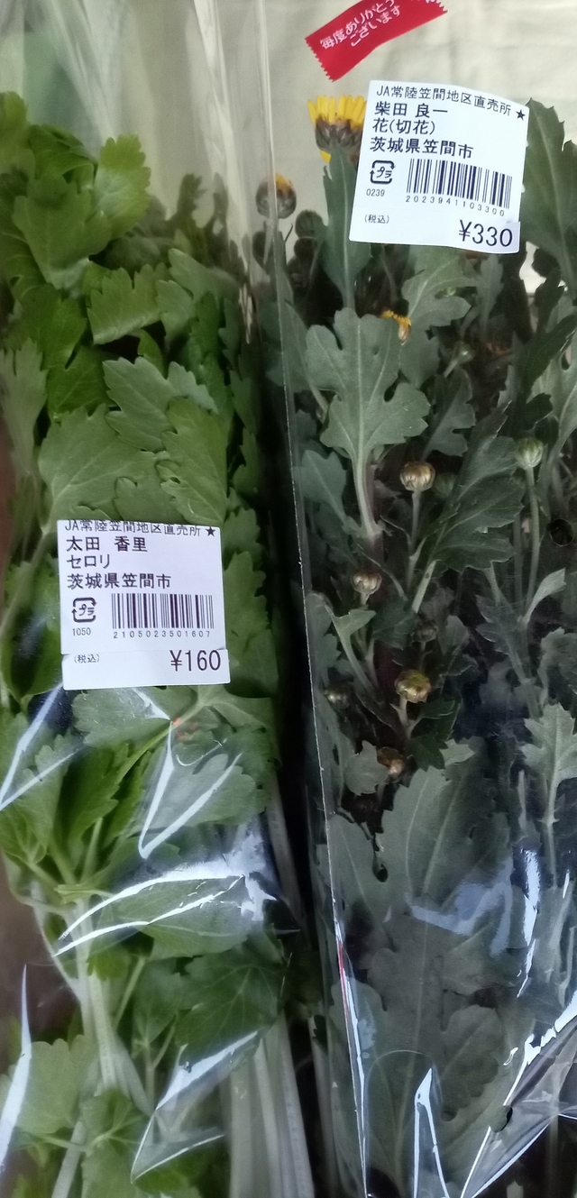 直売所で「セロリ」と「切り花」を購入しました。とても新鮮でお手頃価格、とても嬉しいです。コンビニもある道の駅なので便利です。