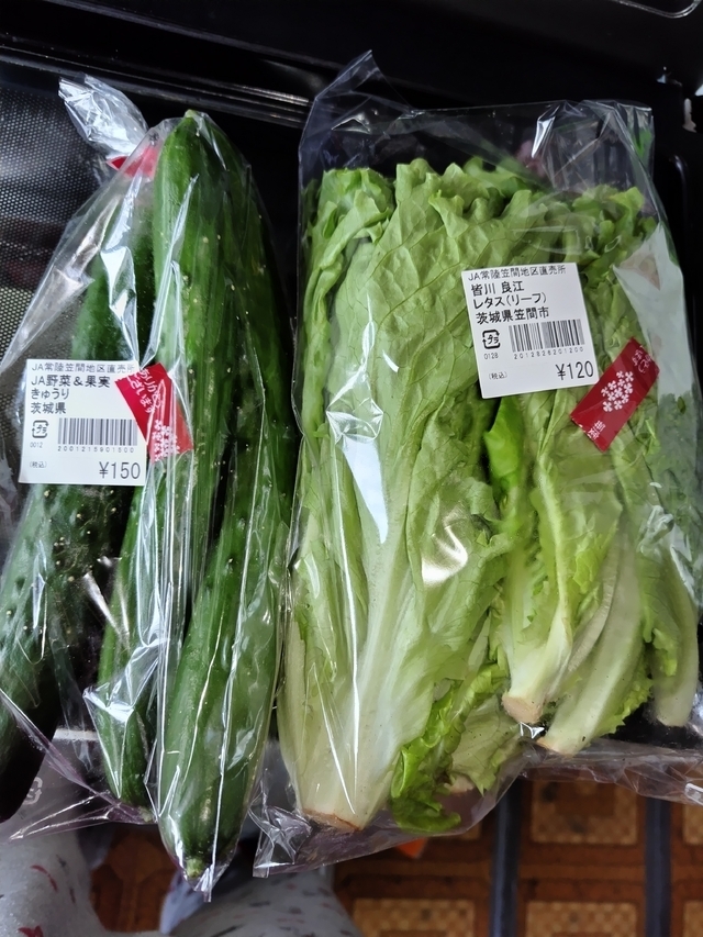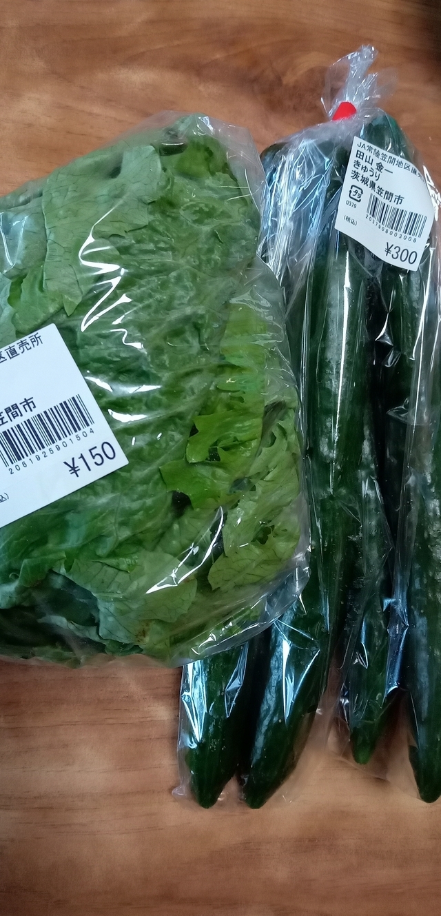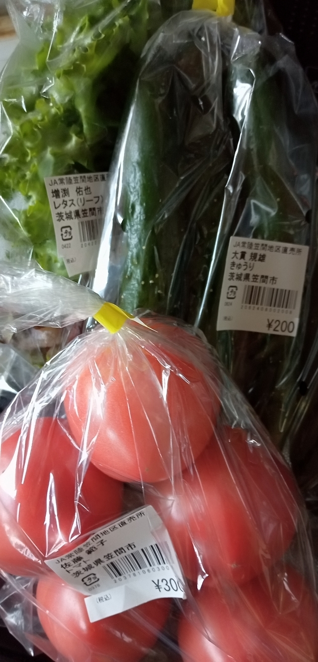 道の駅かさまの多目的室で講座があり、その後、買い物しました。新鮮な野菜があり、値段も手頃でレタス・きゅうり・トマトを購入しました。家でサラダにして美味しく食べました。