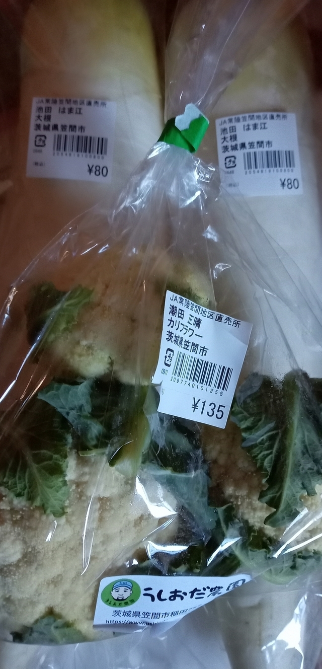 この時期の大根・カリフラワーは、とても美味しいので購入しました。 大根がとてもお買い得で、嬉しくなりました。なますやお雑煮の汁の具にたっぷり使いたいです。カリフラワーは、オリーブオイルで炒めて食べようと思います。