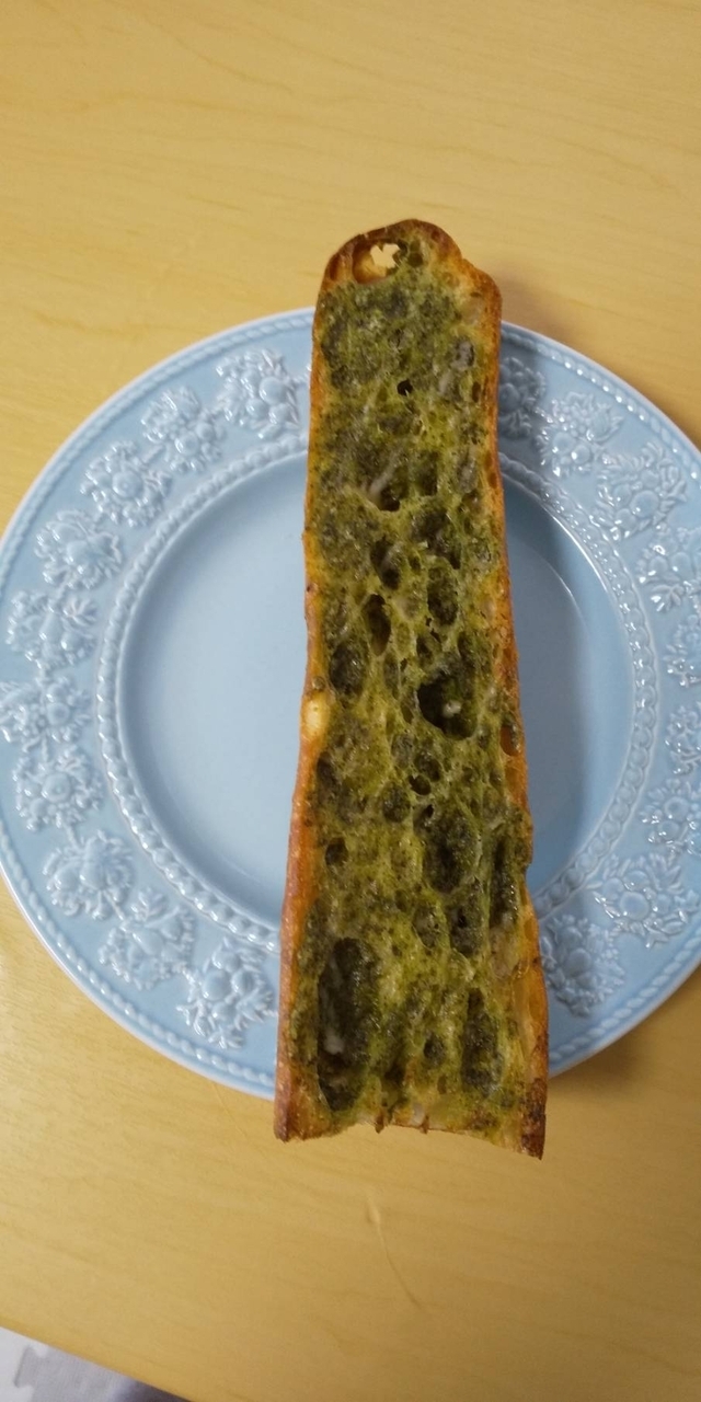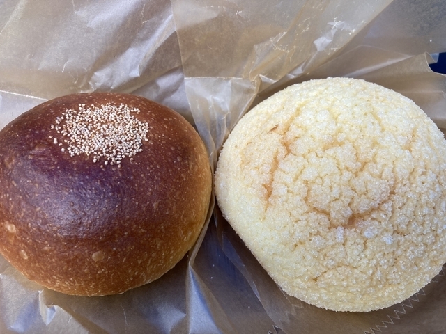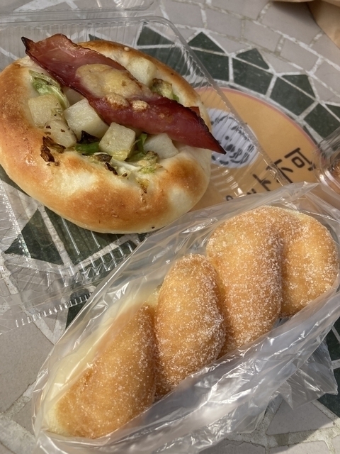 子供の好きなカメのメロンパンが売り切れだったので、バジルの硬いパンを購入しました。バジル部分はやや柔らかめで、子供はほじって食べてました。