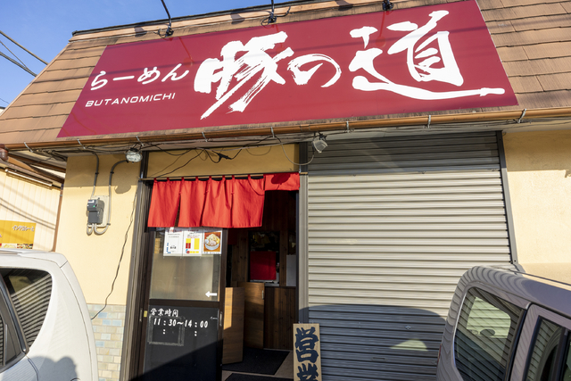 豚のげん骨を丹念に下処理し、強火でガンガン炊き上げたスープ。そこに背脂を加えてしっかりと乳化。とろ~りと粘度を増したスープに、シンプルながらもインパクト大の特製の醤油ダレを合わせて、さらに背脂追加投入。これが豚の道の超濃厚ド乳化スープの秘訣。そこに合わせるのは、こだわりの自家製麺。麺量は通常200gですが大盛300gまで無料で増量可能!!