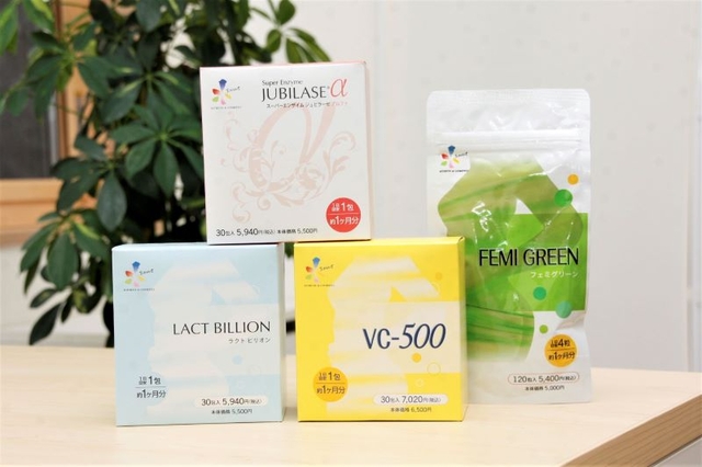 ◆スーパーエンザイム ジュビラーゼα(30包入) 5,940円 免疫力が上がり、基礎代謝もUP!便秘の改善にも ◆ラクトビリオン(30包入) 5,940円 環境の変化に負けない身体づくりをサポートするサプリメントです ◆VC-500(30包入) 7,020円 国際特許を持つ新世代ビタミンC「AA-2G」を500mgも配合 ◆FEMIGREEN(フェミグリーン)(120粒入) 5,400円 美容と健康をトータルサポートする女性のための青汁サプリメント